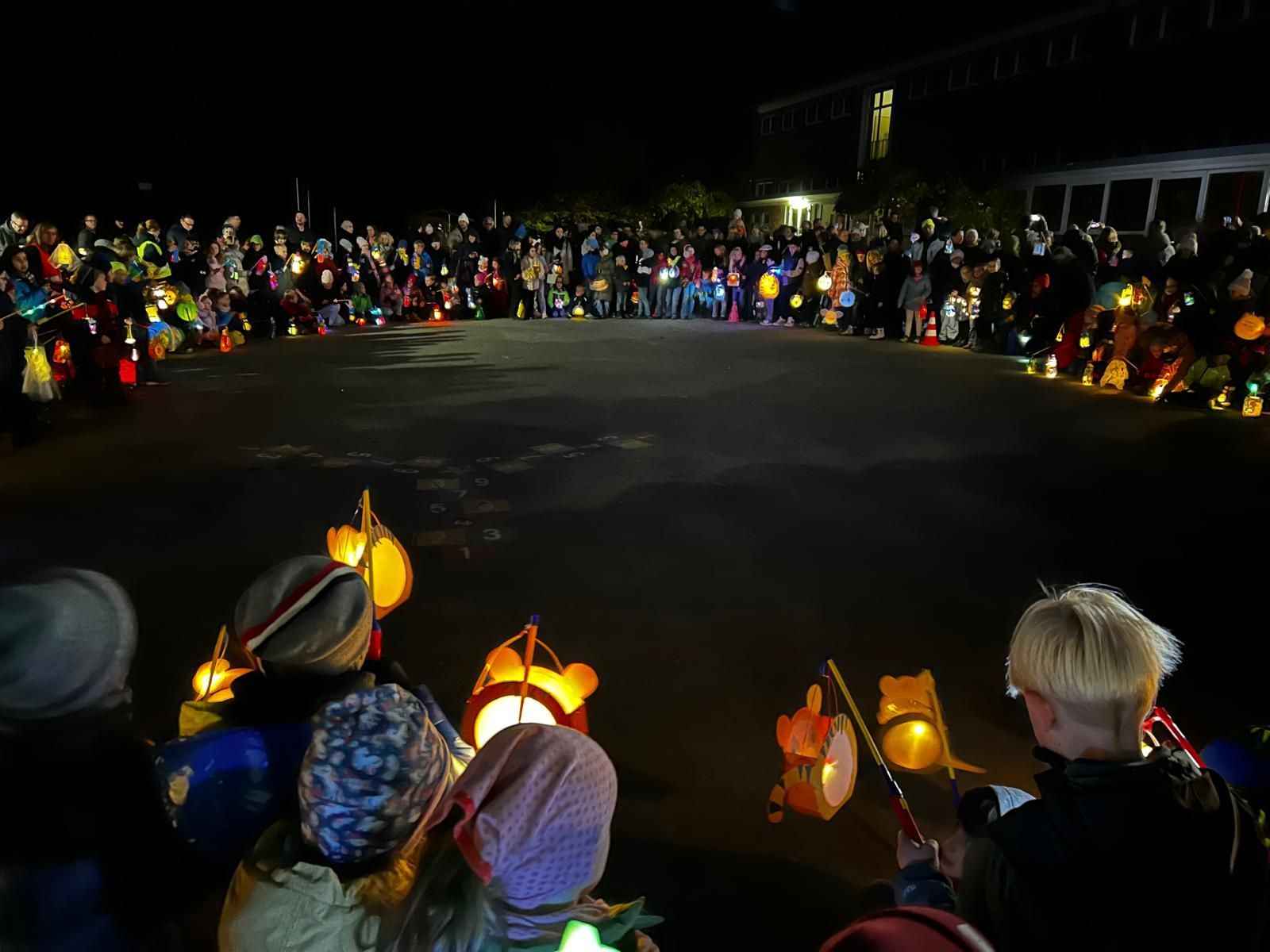 Am vergangenen Freitag feierte die Olpketalschule gemeinsam Sankt Martin. Zur Dämmerung versammelten sich alle Kinder mit ihren leuchtenden Laternen auf dem Schulhof und zogen anschließend durch ein Stück der Bittermark vorbei am Augustinum. Dort freuten sich die Bewohner und Bewohnerinnen über die singenden Lichterkinder. Zurück auf dem Schulhof präsentierten die Kinder der Klasse 2b das Martinsstück im Schein der Laternen. Die Bläserklasse des Max-Planck-Gymnasiums sorgte für die musikalische Untermalung. Bei Kinderpunsch, Glühwein und Brezeln ließen alle den Abend gemütlich ausklingen.