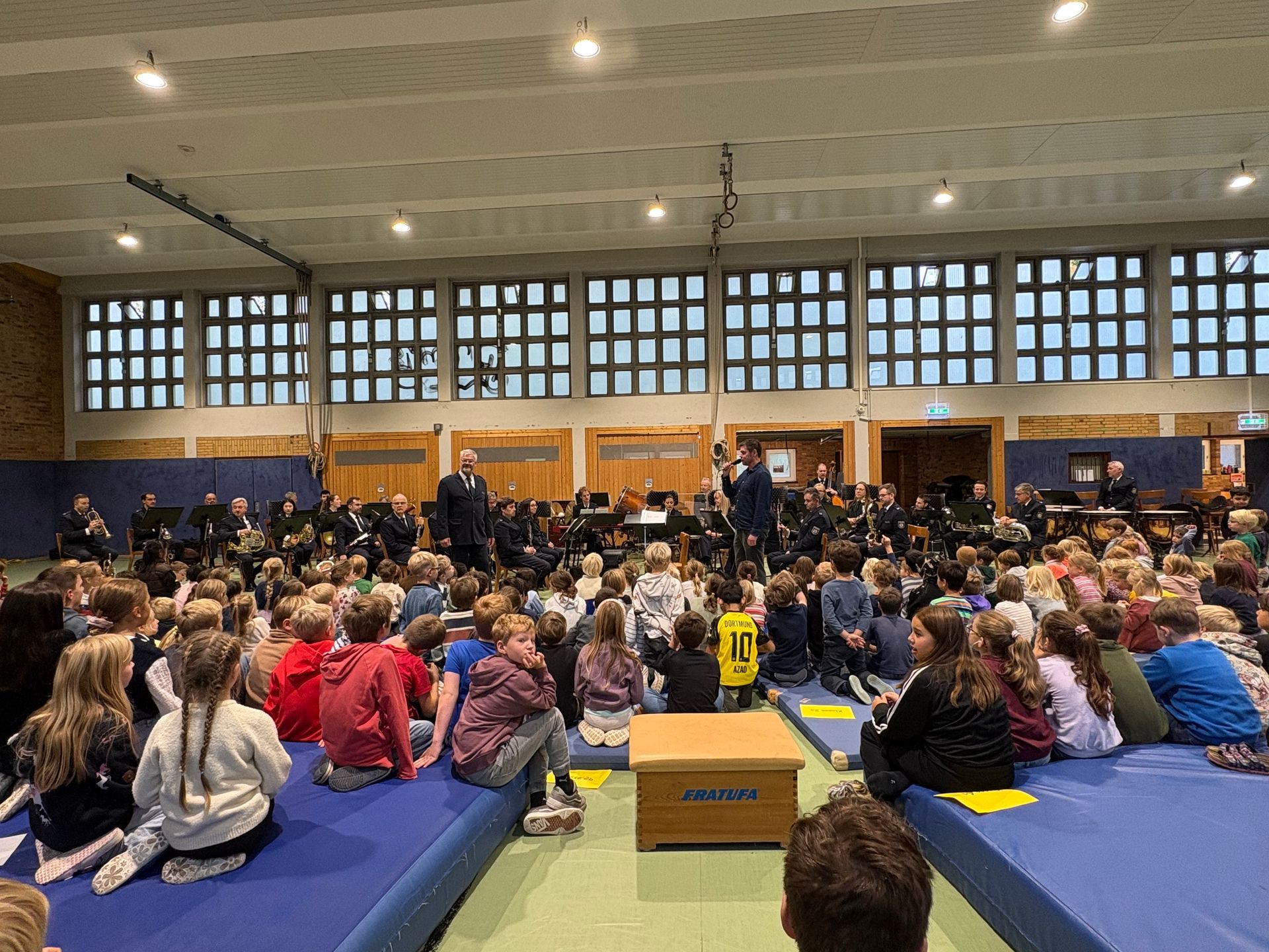 Am 07. Oktober war die Freude an der Olpketal-Grundschule groß: Das Landespolizeiorchester NRW war zu Gast! In der Turnhalle begeisterten die Musikerinnen und Musiker unter der Leitung von Herrn Lawton die Kinder mit einem abwechslungsreichen Konzert, das rund 60 Minuten dauerte.